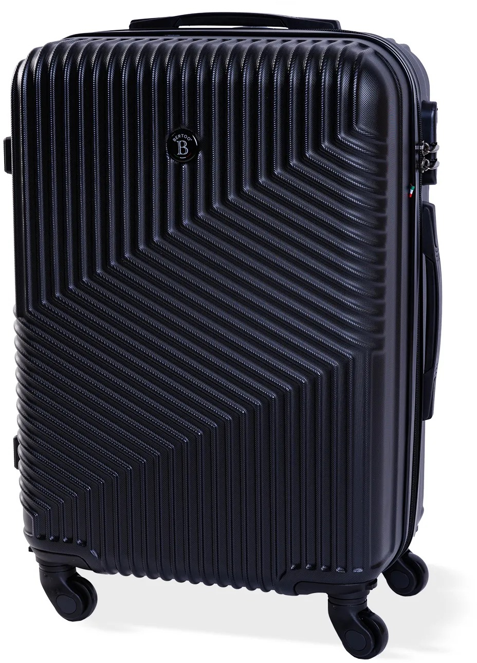 Cestovný kufor – na kolieskach,, škrupinový, objem 99 l, rozmery 75 × 49 × 29 cm (V׊×H), odnímateľné kolesá, 4 otočné kolieska, zapínanie dvojcestným zipsom, číselný zámok, teleskopické, bočné a horné držadlo, čierna farba, hmotnosť 4,2 kg Elegantný kufor Bertoo Milano s objemom 99 litrov je skvelou voľbou pre dlhšie dovolenky alebo dovolenku s rodinou. Vďaka štyrom otočným kolieskam o 360 ° zaisťuje hladkú a pohodlnú manipuláciu v akom