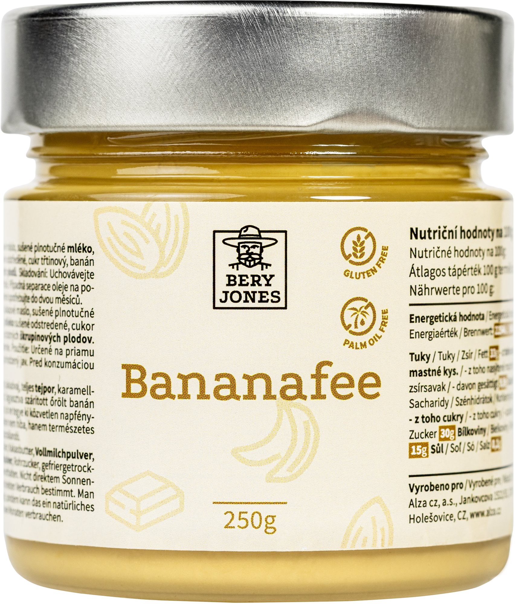 Orechový krém – jemný, arašidový, príchuť banán a karamel, 15 g bielkovín na 100 g, 538,36 kcal na 100 g, neobsahuje lepok, bez palmového oleja, hmotnosť 250 g Orechový krém Bery Jones Bananafee spread 250 gPríchuť Bananafee vám prináša chuť arašidov, banánu a karamelu. Jemný orechový krém Bery Jones s príchuťou arašidov, banánov a karamelu sa vám doslova ro