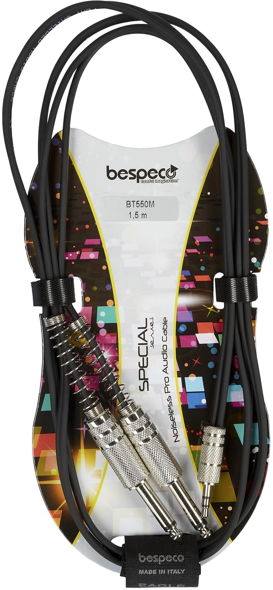 Audio kábel 1,5 m – prepojovací, male konektory: 1× jack 3,5 mm (TRS) + 2× jack 6,35 mm (TS), tienený, so sťahovacou páskou, rovné zakončenie Kľúčové vlastnosti audio kábla BESPECO BT550M Audio kábel BESPECO dotvorí vašu obľúbenú hudobnú zostavu Prepojovací audio kábel sa postará o kvalitný prenos zvukového signálu medzi zariadeniami 1× Jac