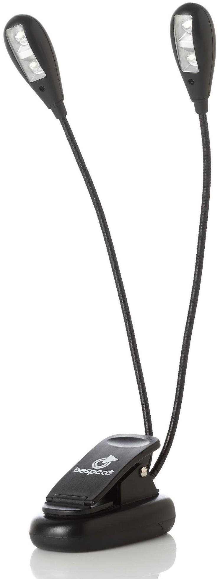 Lampička na noty – klipsová, rameno husí krk, možnosť naklápania, s vypínačom, integrované LED svetlo, USB konektor, na 3 AAA batérie, čierna farba, dĺžka ramena 190 mm Lampička na noty BESPECO sa stane užitočnou súčasťou výbavy každého hudobníka. Spoľahlivo osvieti noty, z ktorých hráte bez toho, aby ich narúšala tieňmi, čo niekedy robia iné zdroje svetla. Tento mod