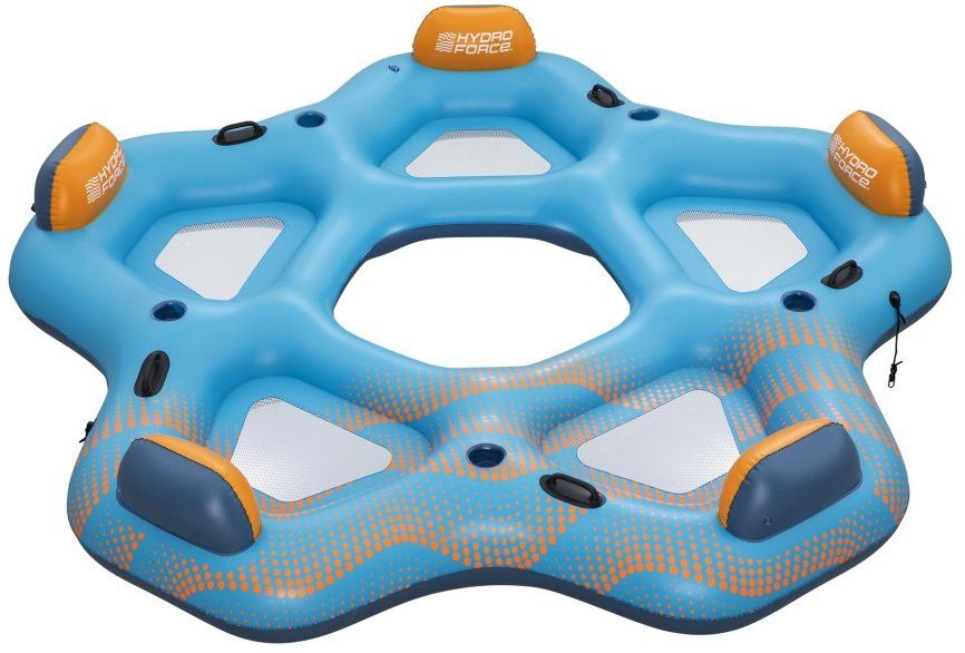 Nafukovacie lehátko do vody – pre 5 osôb, maximálna nosnosť 500 kg, vhodné od 3 rokov, držadlá, držiak na nápoj a opierka súčasťou, materiál PVC, modrá farba, rozmery 279 × 43 cm (D×V) Je zhotovené z PVC. Pevné držadlá sa postarajú o jednoduchšiu manipuláciu pri prenášaní. Nápoj možno pohodlne umiestniť do vstavaného držiaka. Nafukovacie lehátko do vody Bestway je určené všetkým od