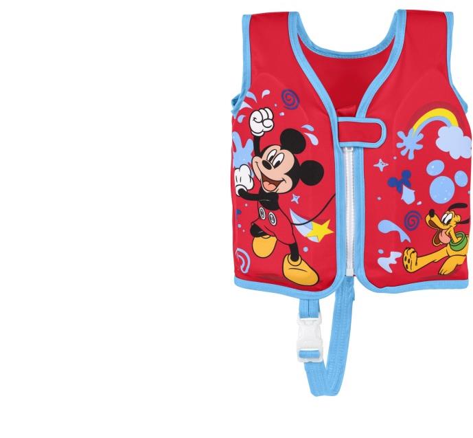 Plávacia vesta pre deti – odporúčaná hmotnosť 15 – 18 kg, zapínanie na zips a pracky, červená farba Plávacia vesta pre deti od 1 do 3 rokov. 50+ UPF, veselý dizajn Mickey Mouse s nastaviteľnou prackou a popruhom. Odolný zips s automatickým zámkom.Veľkosť: 51 cm (nosnosť 11 až 19 kg)