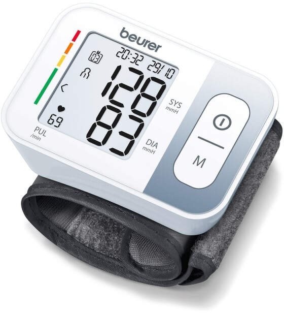 Tlakomer na zápästie – oscilometrická metóda merania, meria systolický tlak, diastolický tlak, pulzovú frekvenciu a arytmiu, manžeta pre max. obvod 19,5 cm, automatické vypnutie, indikácia stavu batérie a displej, pre 2 používateľov, v pamäti udrží 120 meraní, na 2 AAA batérie, ochranný obal v balení, biela farba, rozmery 2,9 × 6 × 8,4 cm (V׊×H), hmotnosť 90 g BEURER BC 28 je tlakomer na zápästie s veľmi jednoduchou obsluhou, určený na pravidelnú kontrolu krvného tlaku a tepovej frekvencie. Vďaka kompaktnému vyhotoveniu a napájaniu pomocou dvoch AAA batérií