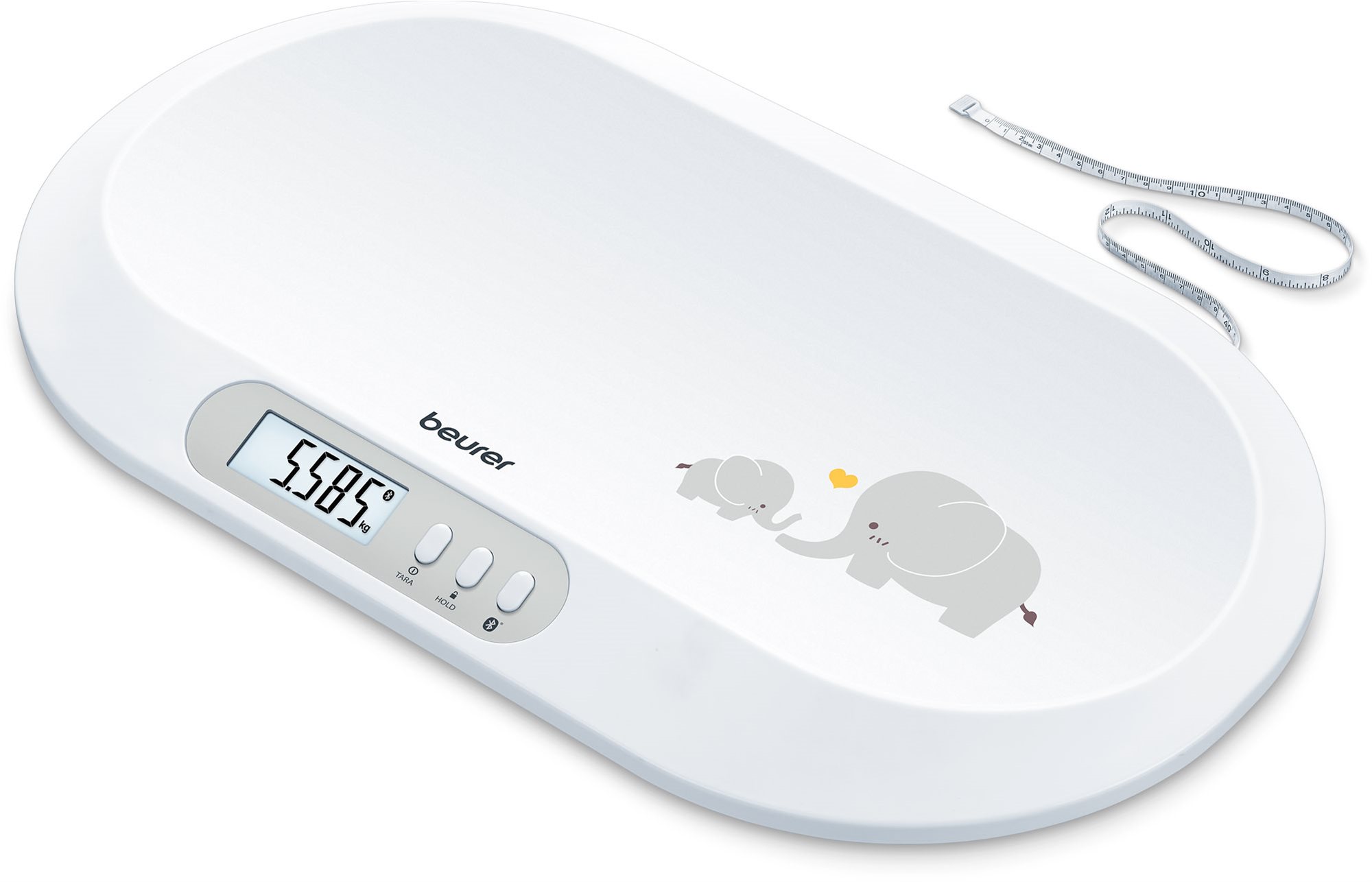 Detská váha pre deti do 20 kg, presnosť váženia 5 g, na batérie typu: AAA, funkcie: párovanie s mobilnou aplikáciou, TARE a HOLD Dojčenská digitálna váha Beurer BY 90 je praktickým pomocníkom na kontrolu váhy vášho bábätka. Je vybavená šikovnými funkciami, medzi ktoré napríklad patrí funkcia TARA umožňujúca odčítať veci vážené