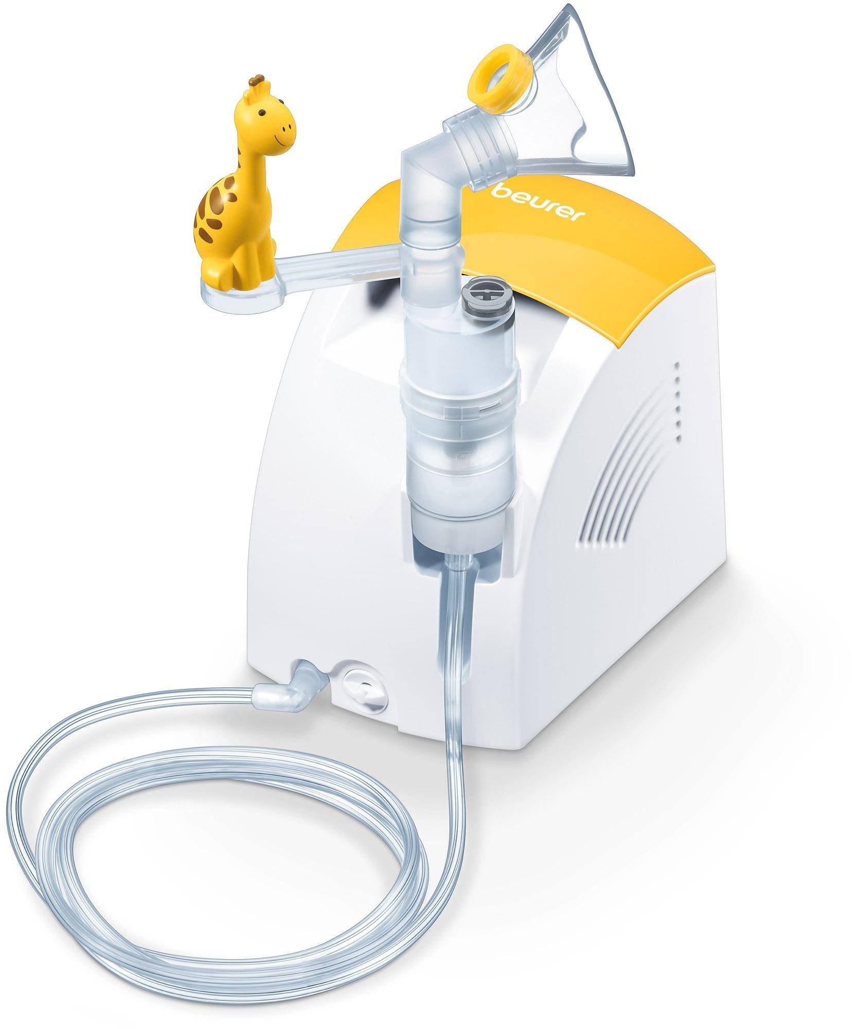 Inhalátor – kompresorový, na liečivá, detský, nebulizačný výkon 0,3 ml/min, veľkosť častíc 3,07 µ, hlučnosť 52 dB, detská maska súčasťou, 2 masky v balení Inhalátor BEURER IH 26 Kids je detský kompresorový inhalátor určený na inhaláciu liečiv pri ťažkostiach horných aj dolných dýchacích ciest. Využíva technológiu stlačeného vzduchu, vďaka ktorej rozpraš