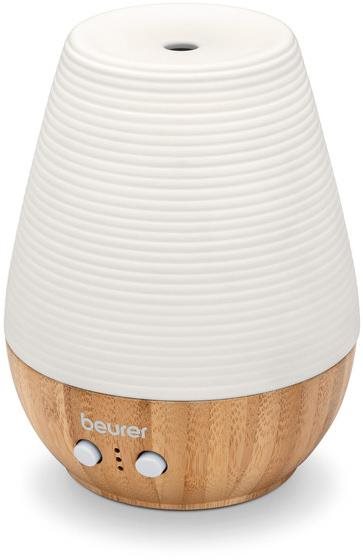 Aróma difuzér – objem nádoby 180 ml, LED podsvietenie, nastavenie intenzity a automatické vypnutie, 6 farieb, doba chodu 18 h, odporúčaná veľkosť miestnosti 20 m², hlučnosť 30 dB, biela farba, materiál plast Beurer LA 40 aróma difuzér prináša do vášho domova elegantné spojenie prírodných materiálov a modernej technológie pre maximálny komfort a uvoľnenie. Vyrobený z bambusu a porcelánu, tento difuzér nie