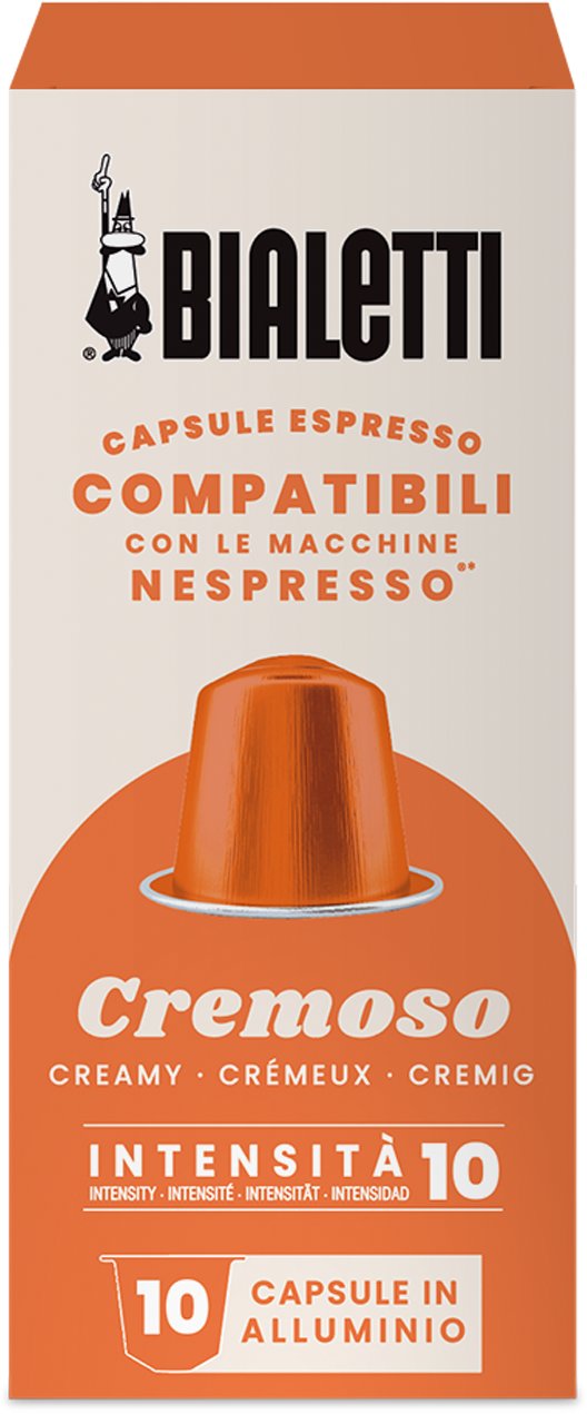 Kávové kapsuly – zmes kávových odrôd, dark (intenzita 10), čokoládová príchuť, ovocné tóny, pôvod kávy Južná Amerika, veľkosť šálky Espresso, materiál kapsuly plast, 10 kapsúl v balení Kávové kapsuly Bialetti Nespresso Cremoso10 kapsúlKávové kapsuly Bialetti Nespresso Cremoso vám umožnia pripraviť lahodnú kávu v kávovaroch Nespresso® Original. Ukrývajú kávu tvorenú zmesou kávových o