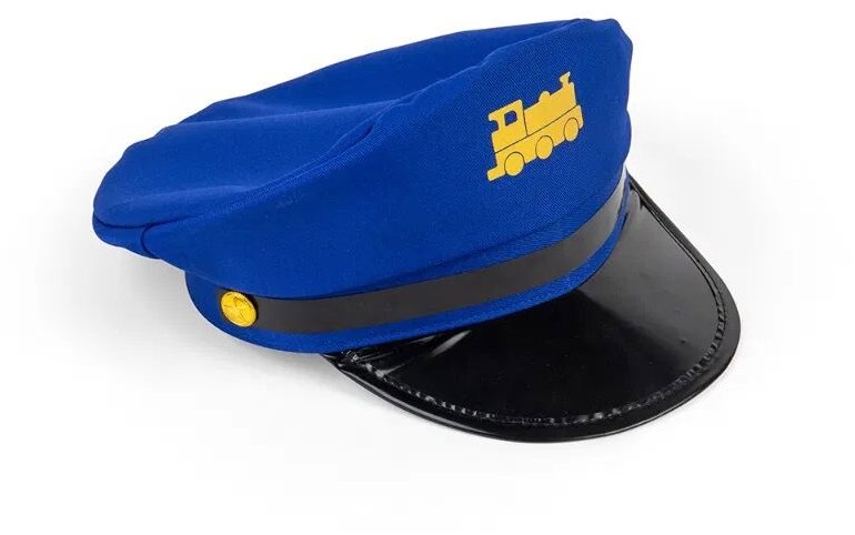 Doplnok ku kostýmu – čapica, čierna, modrá a žltá farba, materiálom je plast a látka Čepice průvodčího značky Bigjigs je vyrobena tak, aby vypadala jako opravdová. Modrá čepice s černým kšiltem a zlatými knoflíky na obou stranách inspiruje malé železniční fanoušky k okamžité hře.