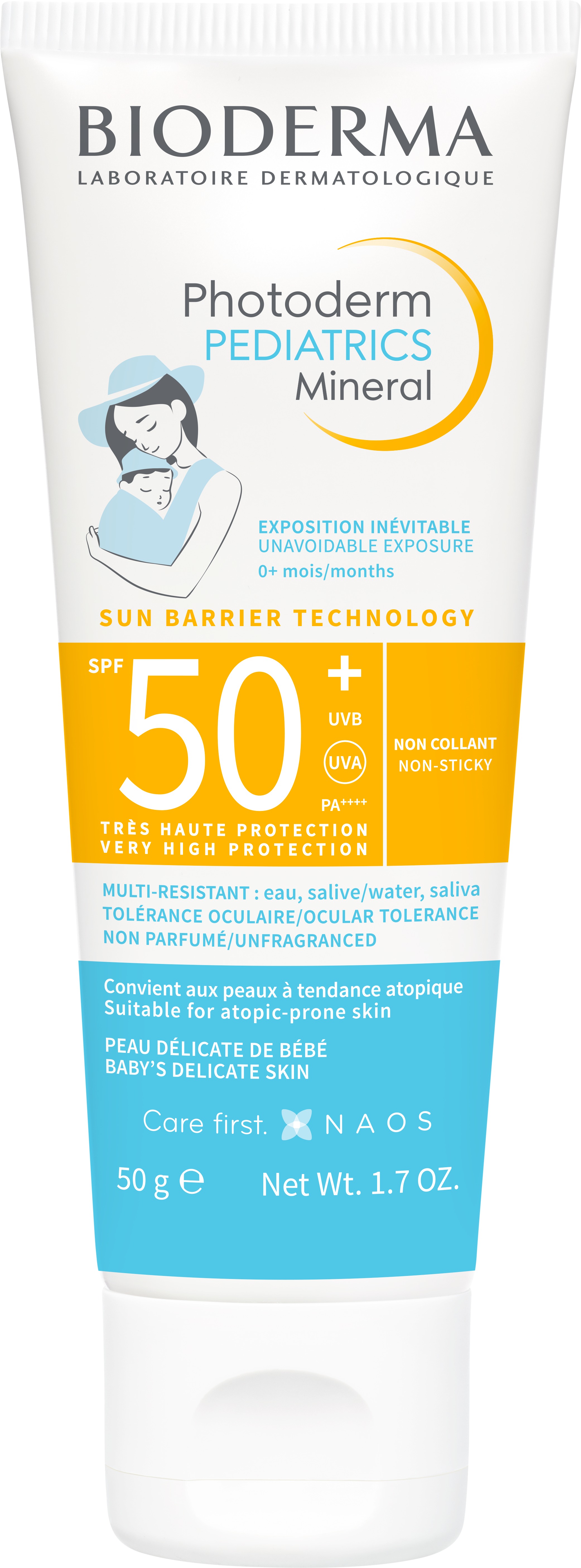 Mlieko na opaľovanie – pre dospelých, ochranný faktor 50, na tvár a na telo, dermo, na atopickú, ekzematickú a citlivú pokožku BIODERMA Photoderm PEDIATRICS Mineral SPF50+ poskytuje trojitú ochranu, špeciálne navrhnutú na jemnú detskú pokožku. Ponúka širokospektrálnu UV ochranu (vrátane UVA žiarenia), ktorá posilňuje prirodze