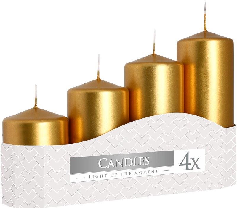 Sada sviečok – klasická, bez parfumovania, s bavlneným knôtom, súprava 4 kusov, vysoká, materiál parafín Kľúčové vlastnosti sviečky BISPOL Adventné Stupňovité Metalická Zlatá 105g / 135g / 170g / 200g Svojím dlhým tvarom je vhodná na použitie do svietnikov alebo napríklad adventných vencov Svojím tvarom