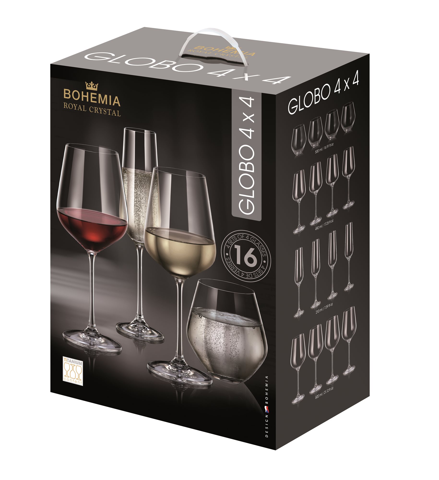 Pohár – na biele víno, na stopke, 16 kusov v balení, materiál sklo Kvalitný set pohárov BOHEMIA ROYAL CRYSTAL Globo od zavedeného českého výrobcu čaká práve na vás. Doprajte si luxus v podobe českého krištáľu…