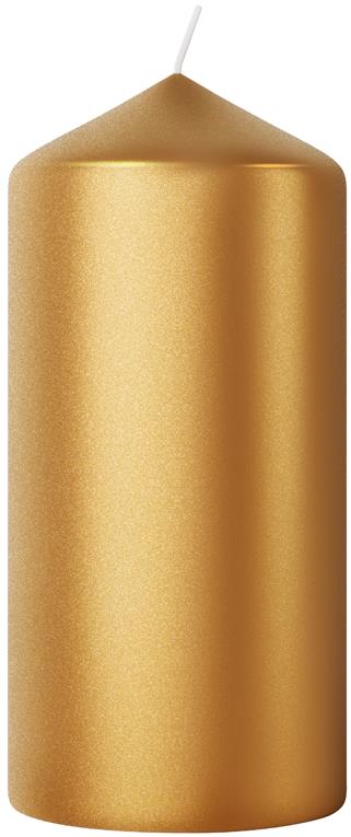 Sviečka – klasická, každodenná, bez parfumovania, valcovitý tvar, vegánska, materiál parafín, zlatá farba, doba horenia 33 h Krásna klasická valcová sviečka z kolekcie PILLAR poskytuje svojim horením až 33 hodín mäkkého svetla. Elegantná voľne stojaca sviečka BOLSIUS Pillar Metallic Golden Orange bez parfumácie má jeden bav