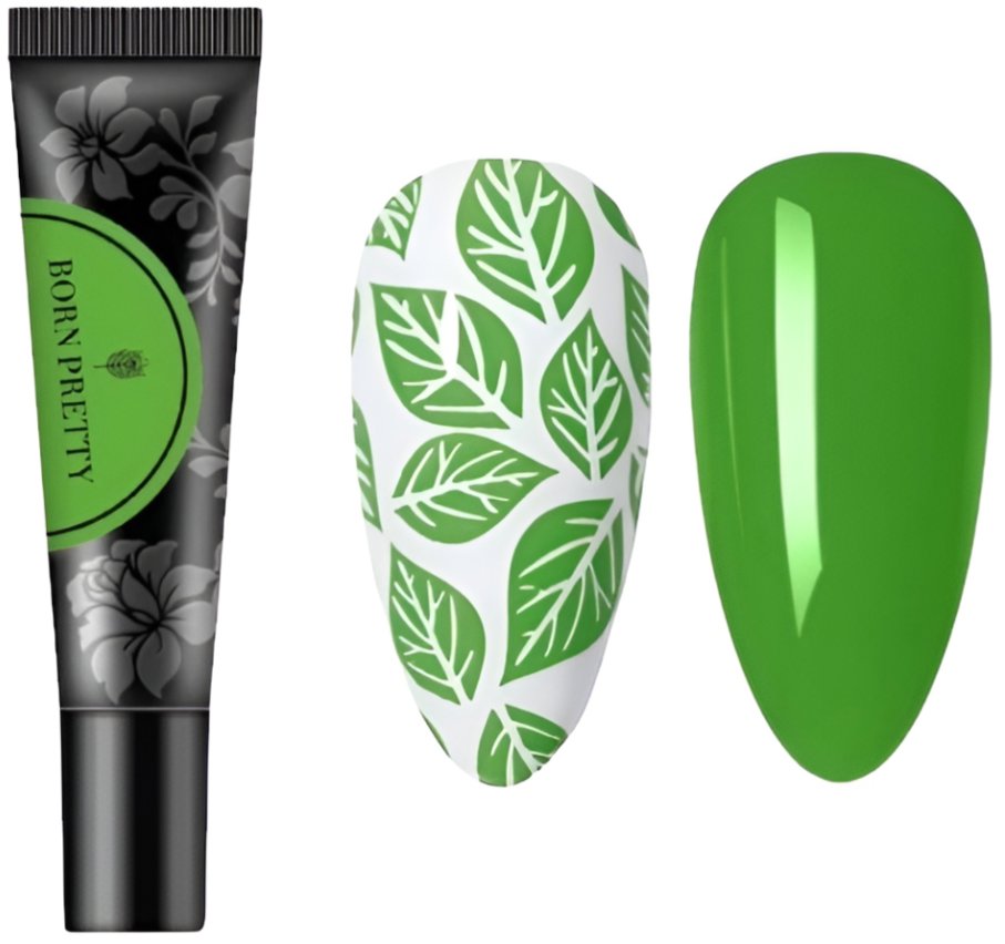 Ozdoby na nechty – pečiatkovací gél, zelená farba Objavte krásne farby pečiatkového gélu BORN PRETTY Stamping gel 2, ktorý vám pomôže vytvoriť mnoho nádherných, jedinečných dizajnov nechtov. Na vytvorenie tohto typu dizajnov nepotrebujete mať žiadnu