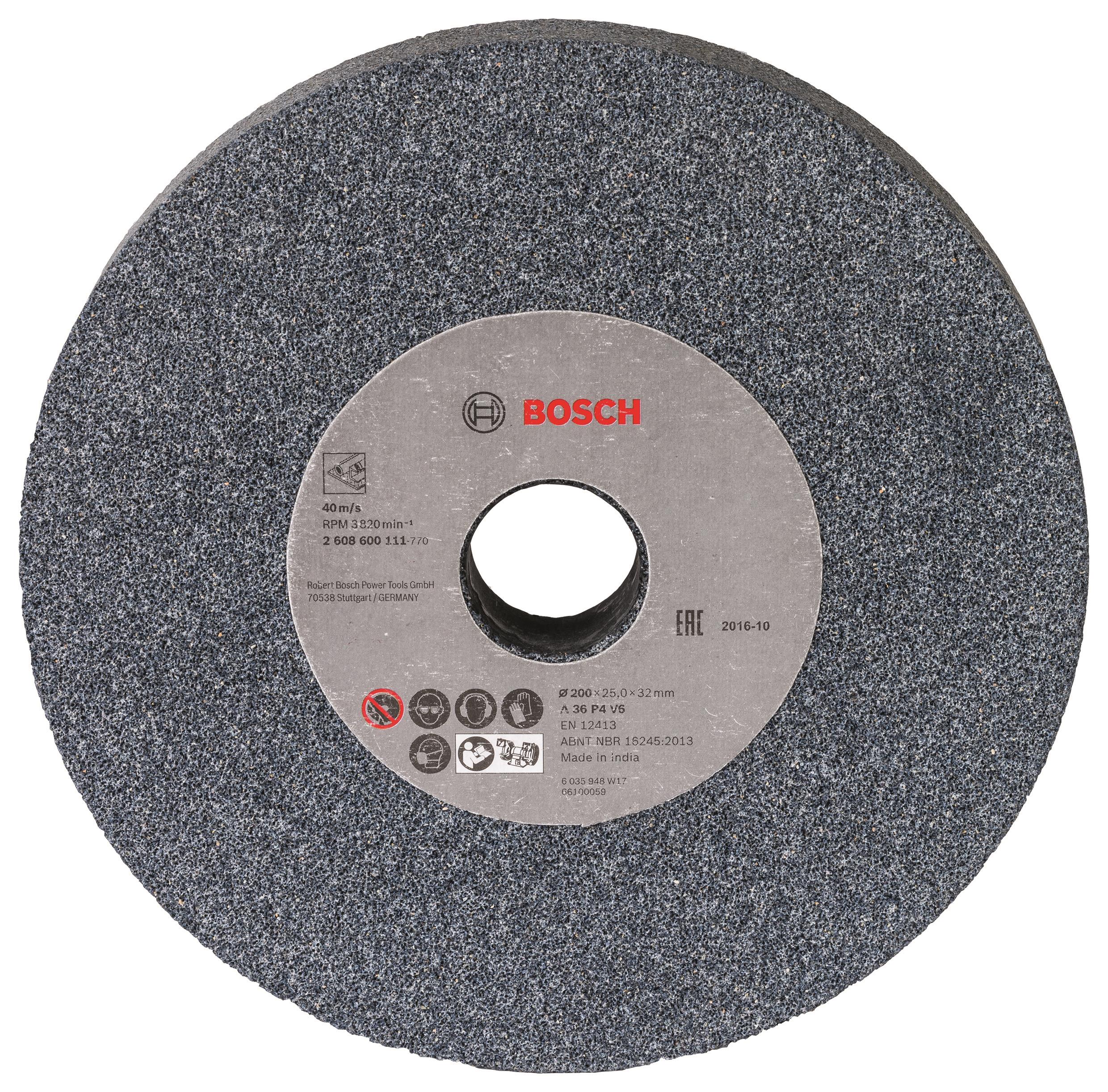Brúsny kotúč na kov a oceľ – plochý, rovný, priemer 200 mm, hrúbka 25 mm, zrnitosť 36, maximálna rýchlosť 3820 ot./min, montážny otvor 32 mm Kľúčové vlastnosti brúsneho kotúča BOSCH Brúsny kotúč pre dvojkotúčovú brúsku 2.608.600.111 Brúsny kotúč Bosch je špeciálne navrhnutý na spracovanie a brúsenie rôznych materiálov Vďaka hrubej štruktúr