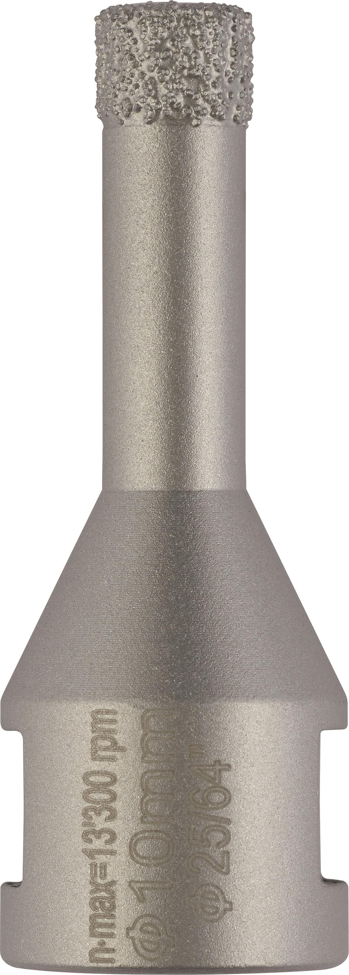 Vŕtacia korunka – do keramiky, dlažby a kameňa, kužeľový tvar, pracovná dĺžka 30 mm, priemer 10 mm, upínanie závitom M14, materiál diamant Hlavné vlastnosti vŕtacej korunky BOSCH Diamantová korunka na vŕtanie za sucha Dry Speed 2.608.599.041 Vŕtacia korunka Bosch má kužeľový tvar Slúži na vŕtanie do keramiky, dlažby a kameňa Jej priemer