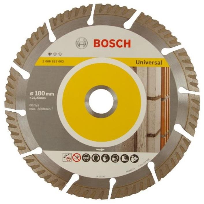 Diamantový kotúč – rezný, vhodný na betón, tehlu, murivo, dlažbu a obklady, priemer 125 mm, montážny otvor 22,23 mm, maximálna rýchlosť 8500 ot. /min Hlavné prednosti diamantového kotúča BOSCH Diamantový rezací kotúč Standard for Universal 125…