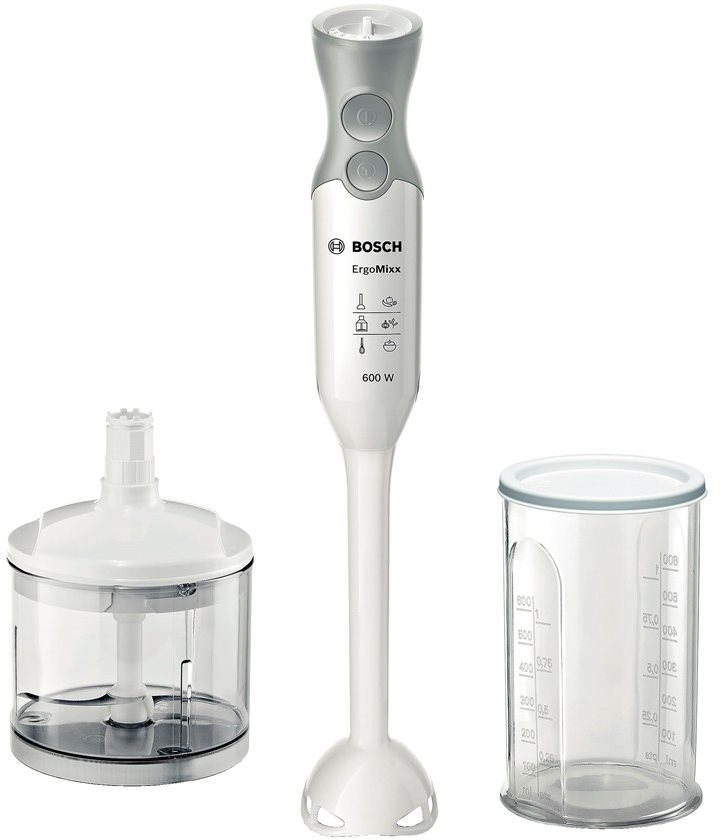 Tyčový mixér – príkon 600 W, 12 rýchlostí, nadstavce vhodné do umývačky a turbo rýchlosť, funkcie: sekanie a mixovanie, 4 nože, sekáčik so sekacou nádobou, mixovacia nádoba a úzka mixovacia noha súčasťou balenia, materiál nohy plast Tyčový mixér Bosch MSM66020 je extra ľahký pomocník do vašej kuchyne so špeciálne ergonomicky tvarovanou rukoväťou a jemnou protišmykovou vrstvou. Nastaviť môžete 12 rýchlostí vhodných pre všetky
