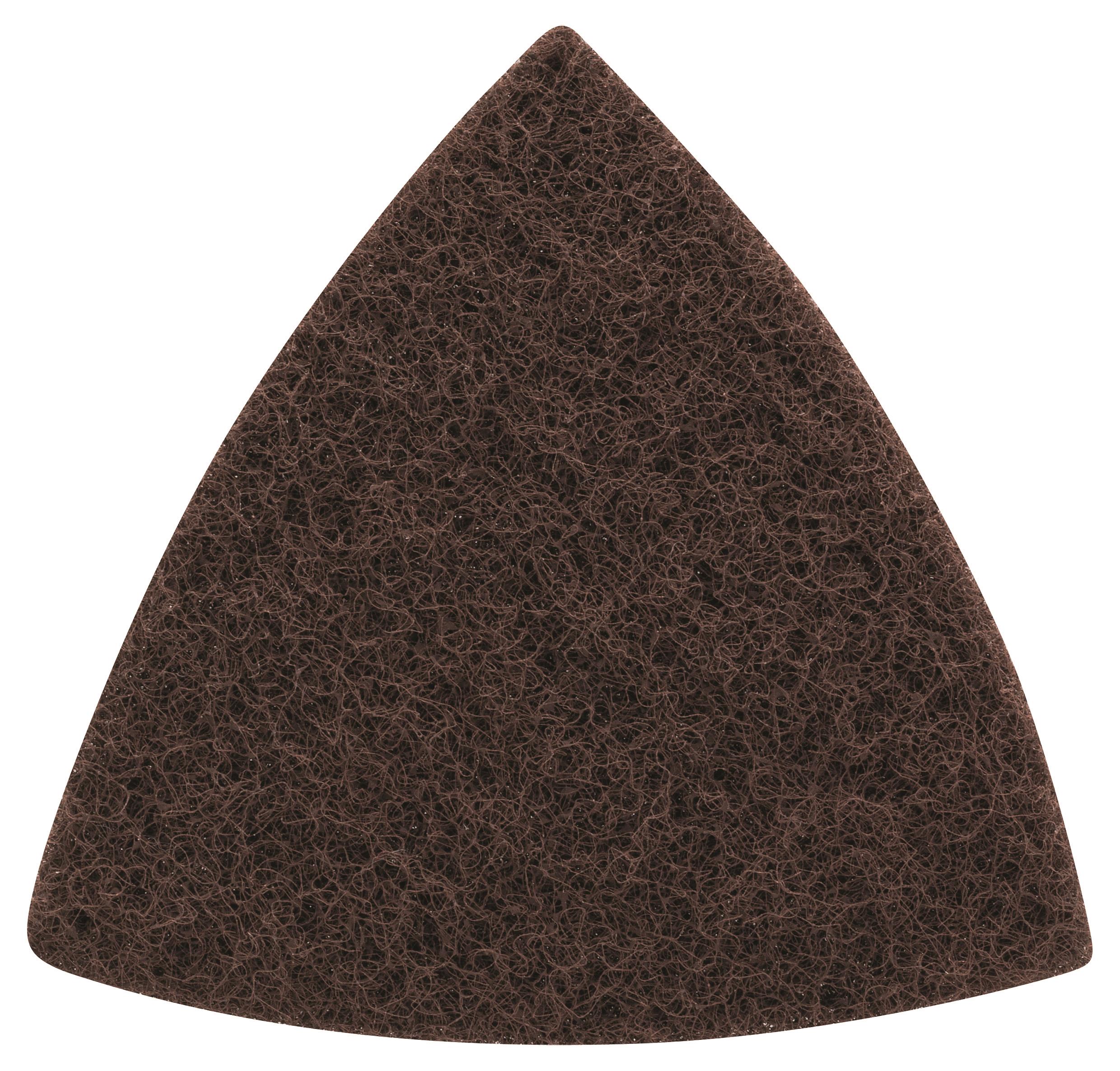 Brúsne rúno – kotúč, na kov, jemné, zrnitosť 180, v tvare trojuholníka, rozmery 93 × 93 mm (Š×D), hnedá farba