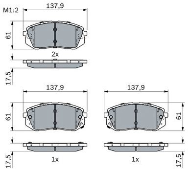 Brzdové doštičky – pre vozidlá značky HYUNDAI a KIA, individuálne kompatibilné modely nájdete v záložke Vhodné pre Technické parametry:Uzavírací výstražný kontakt: s integrovaným kontaktem výstrahy opotřebení. Materiál: Low-metallic. Zkušební značka: ECE-R90. WVA číslo: 24501. Tloušťka/síla [mm]: 17,5. Šířka [mm]: 137,9. Výšk