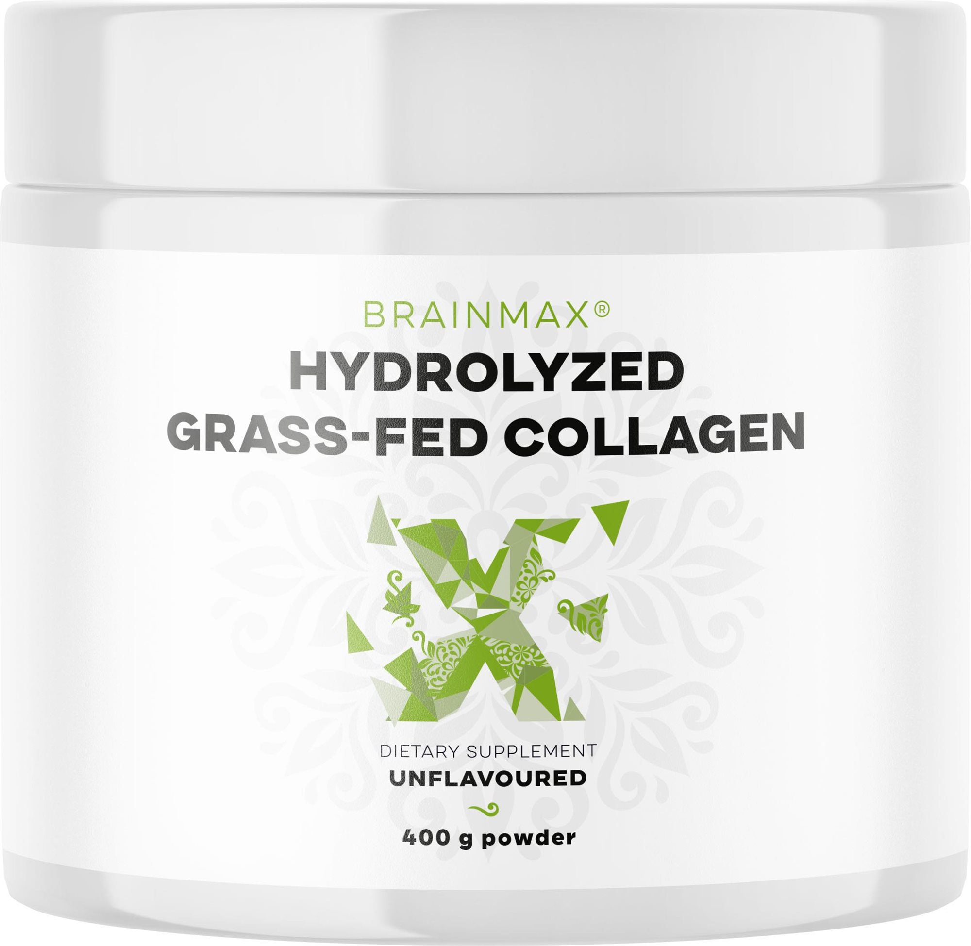 Kolagén – hydrolyzovaný kolagen typu I. a III. (12 g) v 1 dávce, certifikovaný brazilský kolagen z dobytka krmeného trávou, bez aditiv a příchutí, 400 g Hydrolyzovaný GrassFed Collagen jako špička mezi kolagenyBrainMax Hydrolyzovaný Kolagen, Grass-fed Collagen, 400 gHydrolyzovaný kolagen, obsahující typy I a III, tvoří přibližně 30 % bílkovin v těle a