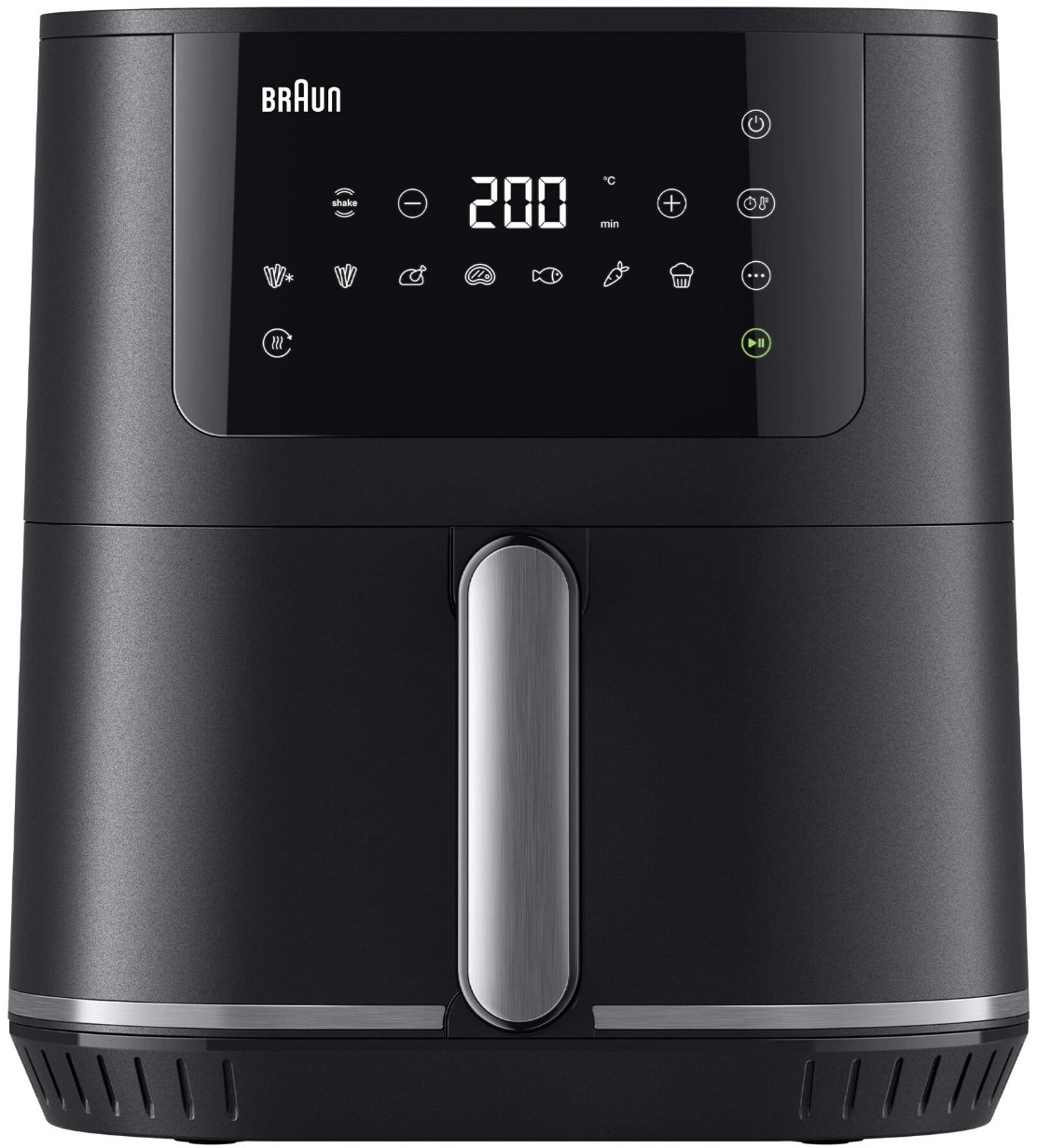 Teplovzdušná fritéza – digitálne ovládanie, nastaviteľná teplota od 80 do 200 °C, s nepriľnavým povrchom, s displejom, s termostatom, časti vhodné do umývačky, časovač, automatické vypnutie, regulácia teploty a automatické programy, 8 programov, vyberateľná nádoba súčasťou, príkon 1700 W, objem nádoby 5,7 l s nepriľnavým povrchom, 1 fritovací kôš, dĺžka kábla 0,8 m, hmotnosť 4,5 kg, rozmery 31,5 × 27 × 26,5 cm (V׊×H), čierna farba Select brand: Teplovzdušná fritéza Braun Multifry 5 HF5030. IBKTeplovzdušná fritéza Braun Multifry 5 HF5030. IBK pripraví vaše obľúbené jedlo s minimálnym množstvom tuku. Zásluhou nepriľnavého povrchu