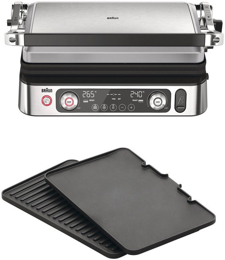 Kontaktný gril – príkon 2200 W, 3 programy, materiál grilu nehrdzavejúca oceľ, displej, nepriľnavý povrch, odkvapkávacia nádoba, regulácia teploty, teplotná sonda a vyberateľný rošt, 2 grilovacie plochy s rozmermi 37 × 23 cm (Š×H), celkové rozmery 45,5 × 34,5 × 19 cm (Š×H×V), hmotnosť 7,46 kg Select brand: Kontaktný gril Braun CG9160Kontaktný gril Braun CG9160 pripraví grilované špeciality aj panini. Disponuje 2 grilovacími plochami, a to rebrovanou a hladkou. Vybavený je 2 nezávislými ter