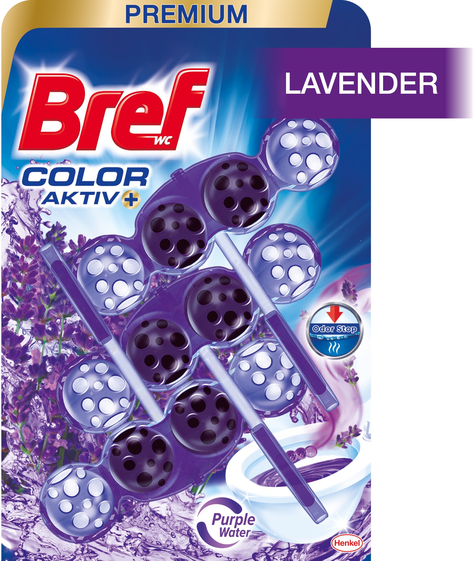 WC blok – pre hygienickú čistotu a sviežosť vašej toalety, farbiaci, na vodný kameň, bez chlóru, svieža vôňa, hmotnosť 150 g Nie je vyplnený Alternatívny text k fotografii!WC blok BREF Purple Aktiv LavenderNové zloženie kolekcie WC blokov Color Activ+ zaručuje o 50 % viac lesku* na povrchu toalety (*v porovnaní so suchým po