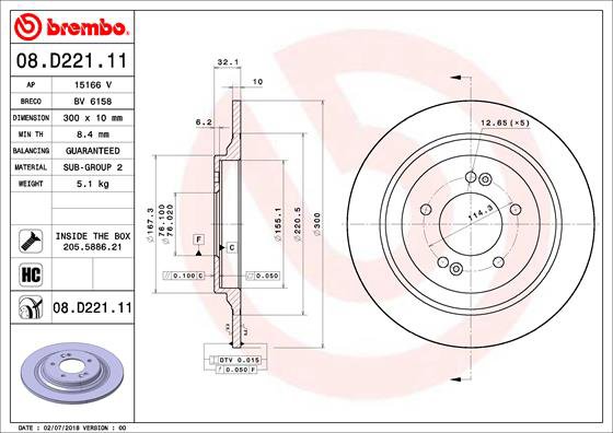 2,89 €BREMBO brzdový kotúč 08.D221.11, sada 2 ks