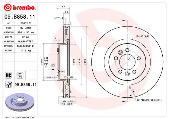 116,14 €BREMBO brzdový kotúč 09.B858.11, súprava 2 ks