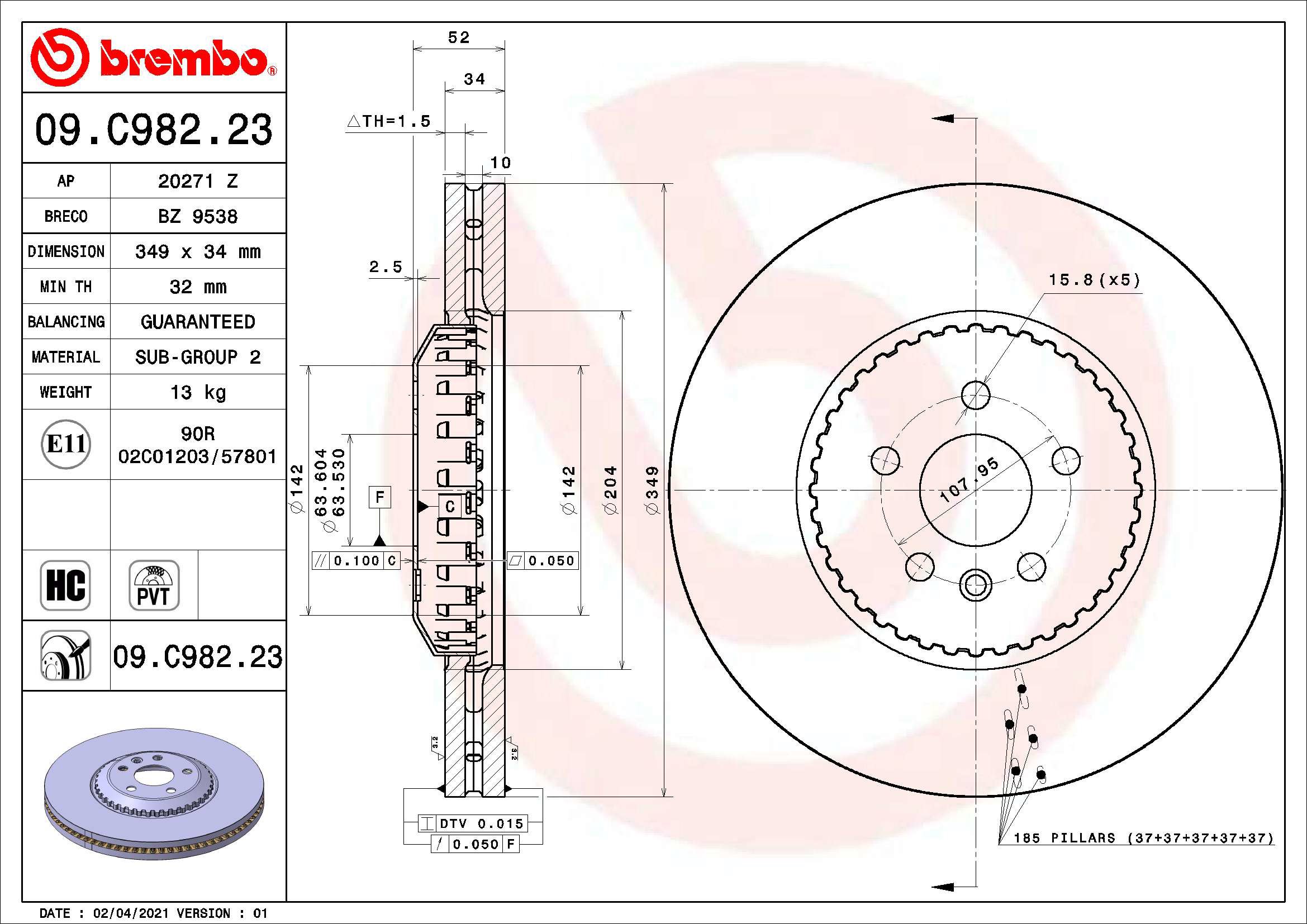 9,90 €BREMBO brzdový kotúč 09.C982.23, súprava 2 ks