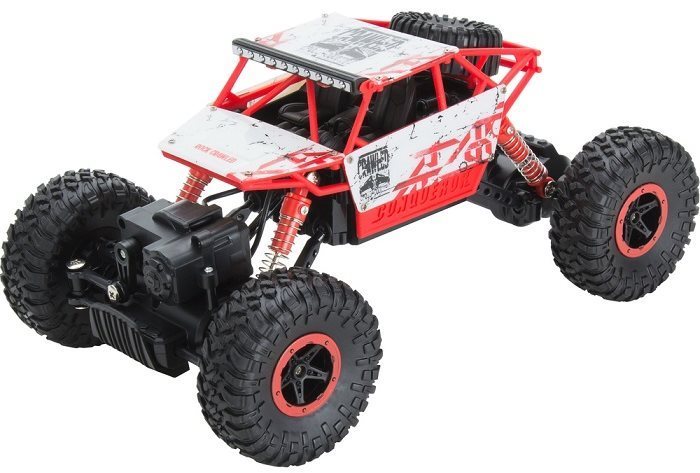 RC auto – monster truck, rozmery 17 × 21 × 33 cm (V׊×D), vhodné do interiéru, elektrický jednosmerný motor, náhon na 4 kolesá, dvojrotorový, gumové pneumatiky, odpružený podvozok a diferenciál, maximálna rýchlosť 8 km/h, dosah prenosu 50 m, autíčko na 4 AA batérie, ovládanie pištoľou, ovládač na 3 AA batérie (nie sú súčasťou balenia) RC auto Buddy Toys BRC 18.610 Rock Climber je skutočným dobrodružstvom na štyroch kolesách. Terénny crawler bol navrhnutý na jazdu v náročnom prostredí, kde bežná RC auta končí. Vďaka pohonu všetkých