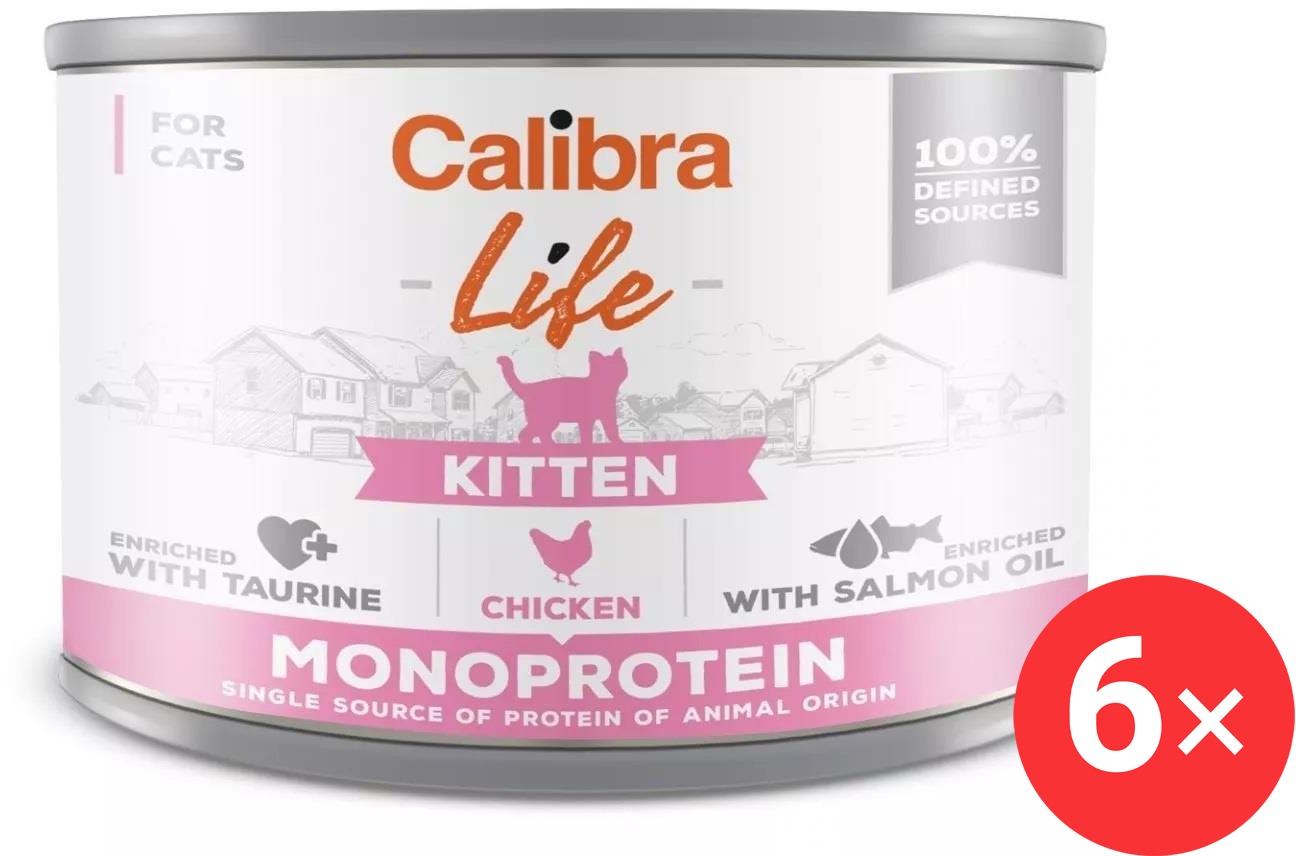 Konzerva pre mačky – mačiatkovského veku s normálnou aktivitou, kuracia príchuť, hmotnosť balenia 0,2 kg, 6 ks v balení, mokré, hrubé bielkoviny 10,5 %, tuky (lososový) 6,5 %, bez obilnín Kompletné krmivo pre mačky Calibra Cat Life vo forme šťavnatej konzervy s kuracím je ideálnou voľbou na každodennú výživu mačiatok, gravidných alebo dojčiacich mačiek. Receptúra založená na jednom dru