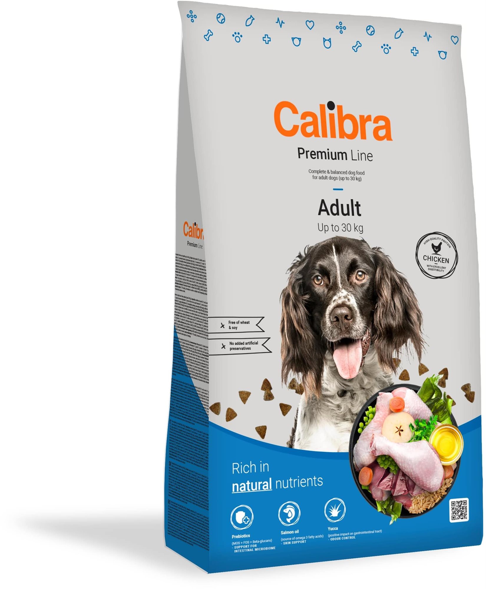 Granuly pre psov – pre malé a stredné plemená dospelého veku s normálnou aktivitou, hydinová a kuracia príchuť, hmotnosť balenia 12 kg, suché, hrubé bielkoviny 24 %, tuky (hydinový) 13 %, s kĺbovou výživou, špecifiká zloženia bez konzervantov, kvasnice, s obsahom juky a morské riasy Calibra Dog Premium Line Adult 12 kg je vysoko kvalitné kompletné suché krmivo pre všetkých dospelých psích miláčikov. Ponúka vyvážený pomer všetkých potrebných živín, vitamínov, minerálov či stopovýc