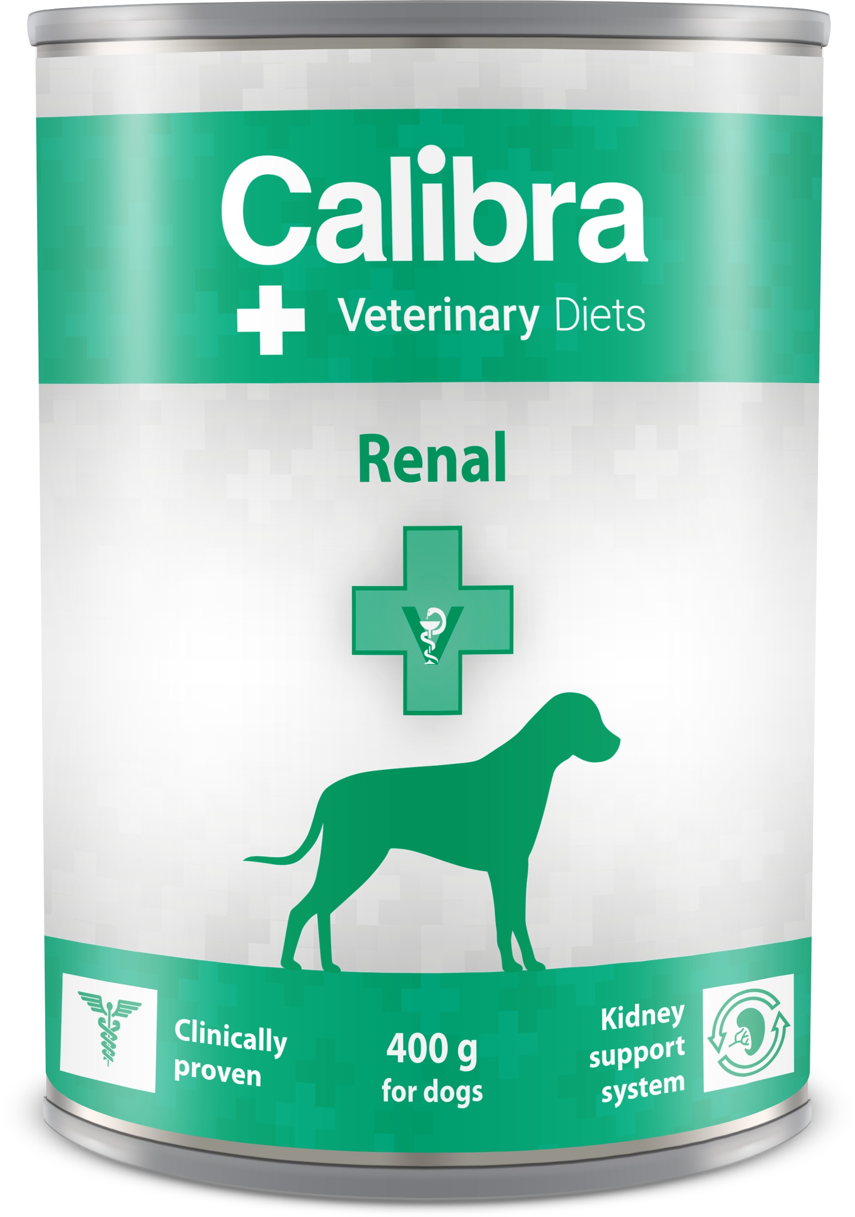 Diétna konzerva pre psov – pre všetky plemená s normálnou aktivitou, hmotnosť balenia 0,4 kg, receptúra: kuracia, hrubé bielkoviny 5,5 %, tuky 8 %, bez GMO, s obsahom juky, morské riasy a diétne, indikácie obličky, nákupom tohto produktu prehlasujete, že vaše zviera podstúpilo vyšetrenie u veterinára a diétne krmivo mu bolo odporučené na základe stanovenej diagnózy Diétna konzerva Calibra VD Dog konz. Renal je kompletné krmivo pre psov na podporu obličkovej funkcie v prípade chronickej alebo dočasnej obličkovej nedostatočnosti. Diéta so zníženým obsahom proteínu