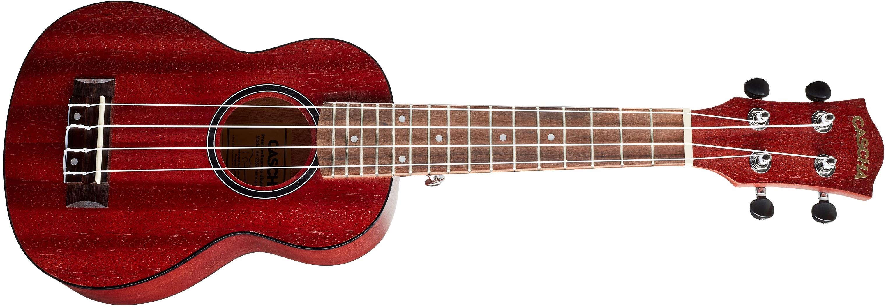 Ukulele – sopránové, 16 pražcov, vrstvený korpus, povrchová úprava mat, predná doska mahagón, zadná doska mahagón, luby mahagón, krk vavrín, hmatník palisander, menzúra 348 mm, šírka nultého podvalu 35 mm, balenie obsahuje obal Menšie vyhotovenie a 4 struny, tak môžeme charakterizovať ukulele CASCHA HH 2263. Vzhľadom na jeho veľkosť môžu na ňom hrať nielen dospelí, ale aj deti. Navyše ho rýchlo zabalíte na cesty do batoha, a