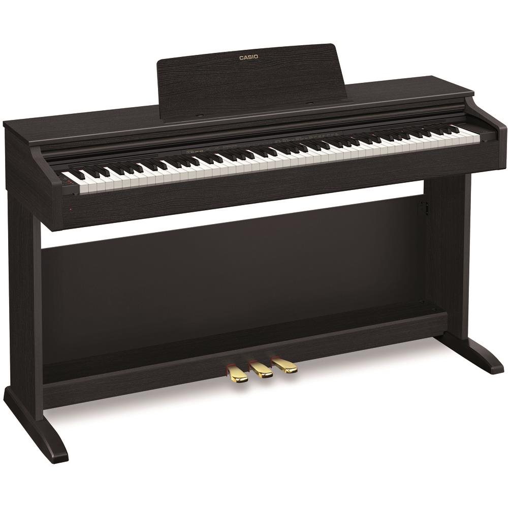 Digitálne piano – 88 klávesov, s vyváženou klaviatúrou a kladivkovou mechanikou, s dynamikou, povrch klávesov matný, 22 zvukov, 192-hlasová polyfónia s výkonom 16 W, USB MIDI, vstup na pedál, výukový systém, hmotnosť 36,6 kg, súčasť balenia je adaptér a notový pult Pokiaľ je vaším prianím kúpiť si hudobný nástroj, ktorý predstavuje modernú alternatívu klasického piana, odporúčame vám digitálne piano CASIO. Bude parádnym dizajnovým kúskom vo vašej domácnosti, zár