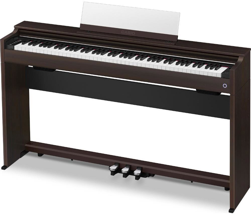 Digitálne piano – 88 klávesov, s vyváženou klaviatúrou a kladivkovou mechanikou, s dynamikou, povrch klávesov lesklý, 19 zvukov, 192-hlasová polyfónia s výkonom 40 W, USB MIDI, vstup na pedál, Bluetooth, hmotnosť 34 kg, súčasť balenia je adaptér, pedál a stojan Pokiaľ hľadáte kvalitný hudobný nástroj, ktorý predstavuje modernú alternatívu klasického klavíra, skvelou voľbou pre vás bude digitálne piano CASIO. Bude dizajnovým kúskom vo vašej domácnosti, zárove