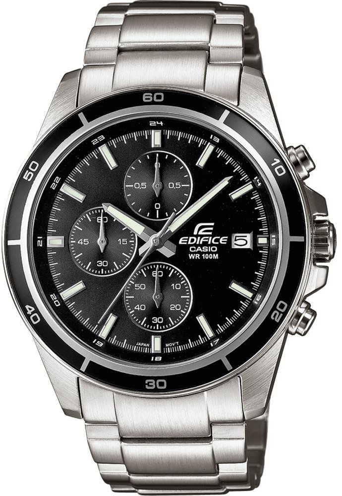 Hodinky pánske – analógové zobrazenie času, strojček quartz, okrúhly ciferník, stopky, rad Casio Edifice, elegantné, bez číslovania, minerálne sklíčko, vodotesnosť 100 m (10 ATM), materiál puzdra oceľ, strieborná farba puzdra, materiál remienka oceľ, strieborná farba remienka, s vymeniteľným remienkom Štýlové a dizajnovo detailne prepracované pánske náramkové hodinky značky Casio. Sú nielen pekné, ale aj nadštandardne odolné. Tieto elegantné hodinky sa môžu pochváliť pevným oceľovým púzdrom, ktoré