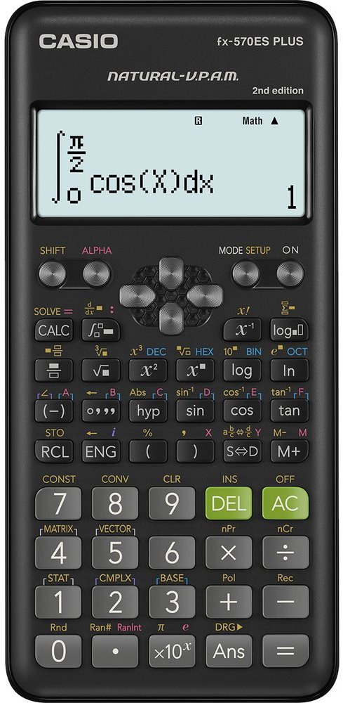 Kalkulačka – vedecká, napájanie: batériové, bodový displej, goniometrické funkcie, zlomky, logaritmus, odmocniny, výpočet percent, s ochranným puzdrom Chcete si byť istí, že pri výpočtoch neurobíte chybu? Nápomocná vám v tom prípade bude kalkulačka CASIO FX 570 ES PLUS 2E. Vedecká kalkulačka vie rýchlo vypočítať aj pokročilé počítacie operácie, z t