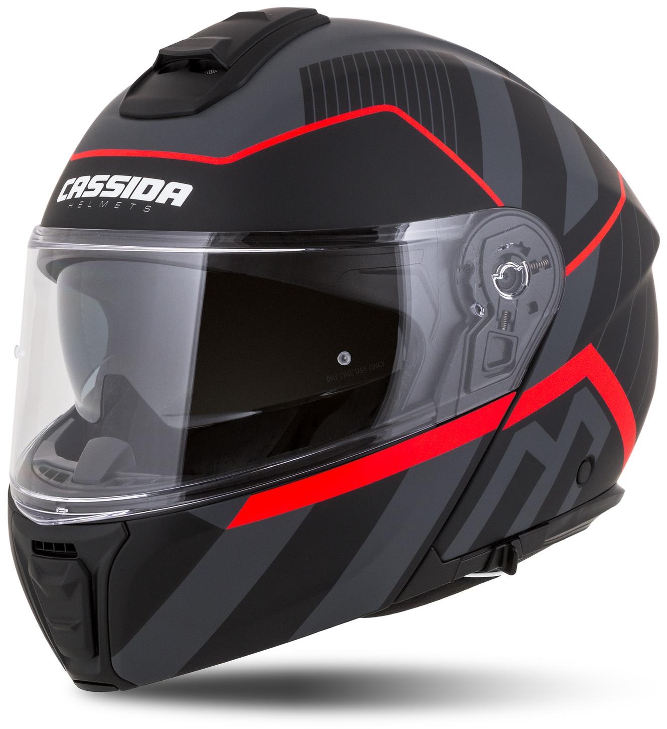 Prilba na motorku – materiál škrupiny sklolaminát, homologizácia ECE 22.06, plexi antiscratch, príprava na pinlock, integrovaná slnečná clona, vyberateľný interiér, odnímateľné lícnice, príprava na interkom, mikrometrická pracka, hmotnosť 1350 g (± 50 g), čierna farba, veľkosť XL, matná povrchová úprava, športový dizajn Prilba na motorku CASSIDA je nevyhnutným bezpečnostným prvkom a pri nehode zaisťuje ochranu hlavy tým, že tlmí a pohlcuje nárazy. Umožňuje odklopiť bradovú časť, čo je užitočné pri krátkych zastávkach