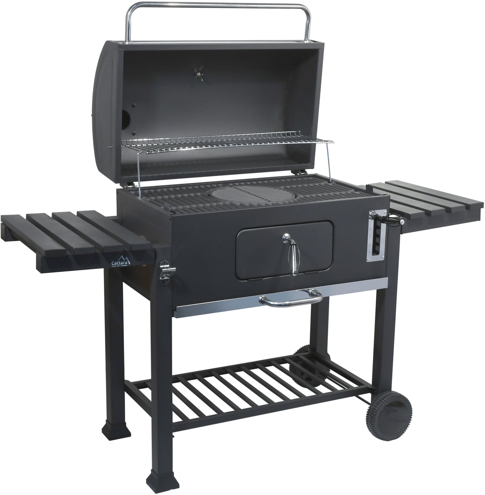 Gril – na drevené uhlie, záhradný, rozmery 154 × 110 × 46 cm (V׊×H), materiál grilovacej plochy liatina, materiál grilu oceľ, odkladacia plocha a kolieska súčasťou, hmotnosť 43 kg Cattara ROYAL GRANDE XXL liatinový rošt. Gril…