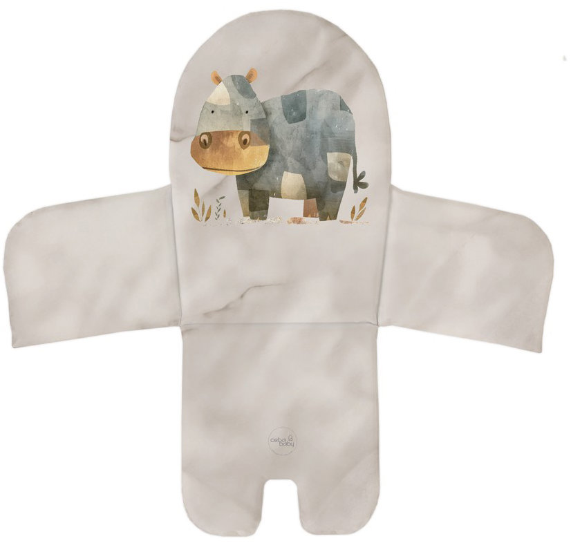 Vložka do jedálnej stoličky – mäkká vložka do jedálenskej stoličky, materiál PVC, výplň polyesterové vlákno, farba sivá, rozmery 26 × 24 × 40 cm, vonkajšia vrstva je vyrobená z certifikovaného materiálu s vodoodolnými vlastnosťami Vložka do jedálenskej stoličky CEBA Basic Cosy Hippo zaisťuje pohodlnú a bezpečnú oporu počas jedla aj hrania. Ergonomický tvar podporuje správne sedenie dieťaťa a prispieva k jeho pohodliu. Vonkajšia