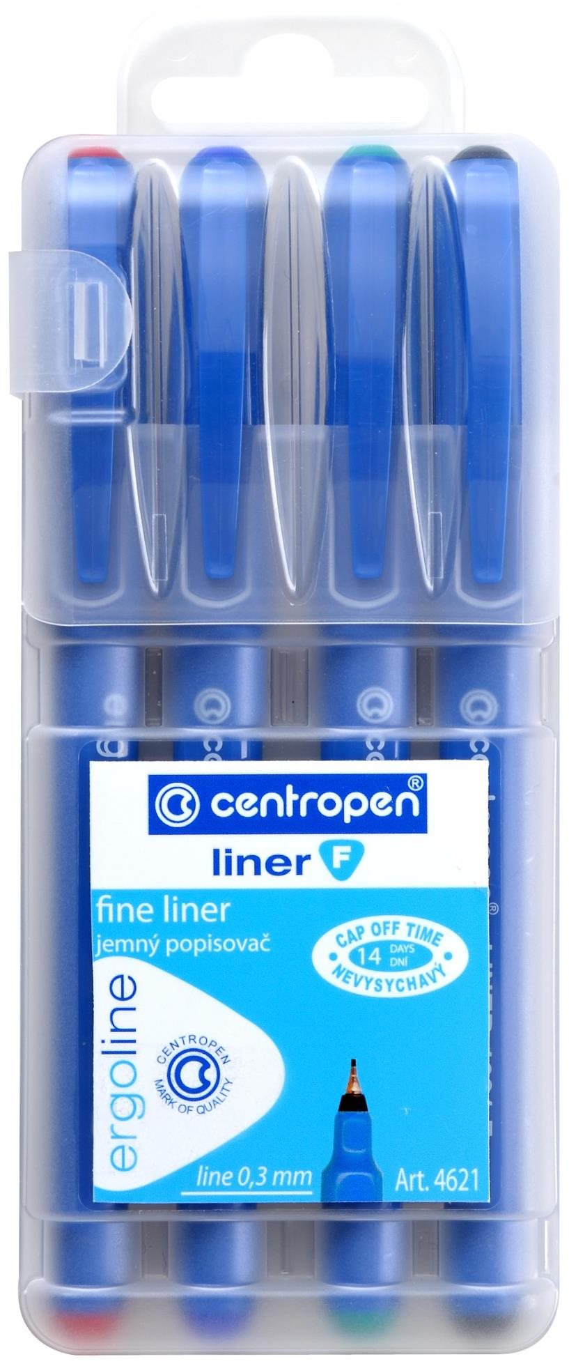 Linery – so šírkou stopy 0,3 mm, guľatý tvar, atramentová farba, vodoodolné, štvorhranný úchop, 4 linery v balení Zásadné vlastnosti produktu CENTROPEN liner 4621 4 ksLinery Centropen patria medzi nástroje na písanie a kresleniePomôžu vám vyjadriť vaše kreatívne myšlienkyHodia sa na papierŠtvorhranný tvar na lepš