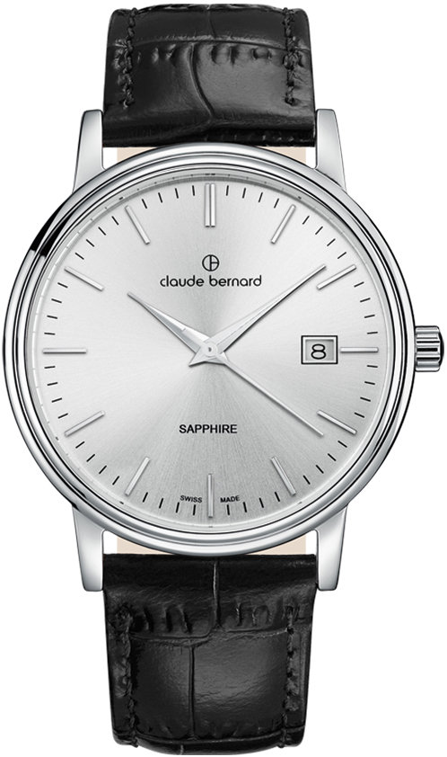 Hodinky pánske – analógové zobrazenie času, strojček quartz, okrúhly ciferník, dátum, elegantné, bez číslovania, zafírové sklíčko, vodotesnosť 30 m (3 ATM), materiál puzdra chirurgická oceľ, strieborná farba puzdra, materiál remienka koža, čierna farba remienka Claude Bernard 53009 3 AIN sú originálne pánske hodinky na ruku, ktoré prepájajú spoľahlivosť so štýlom. Ich základom je okrúhly ciferník s priemerom 42 mm. Takzvané Quartz riešenie strojčeka je záruk