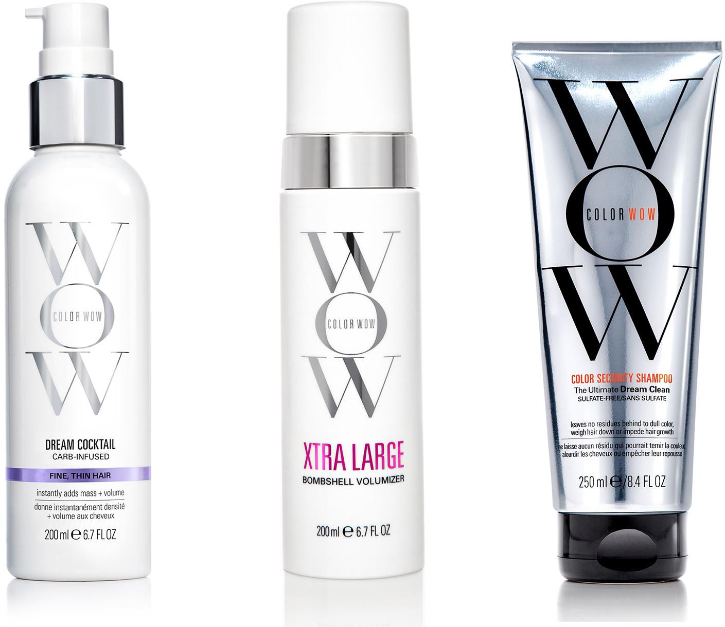 Sada vlasovej kozmetiky – obsahuje: Šampón 250 ml, Krém na vlasy 200 ml, Sprej na vlasy 50 ml Americká značka Color WOW sa pýši produktmi so špeciálnym zložením, ktoré chránia a predlžujú sýtosť a lesk farby vlasov. Ponúka chemicky farbeným vlasom ochranu pred suchosťou a lámavosťou. Zároveň s