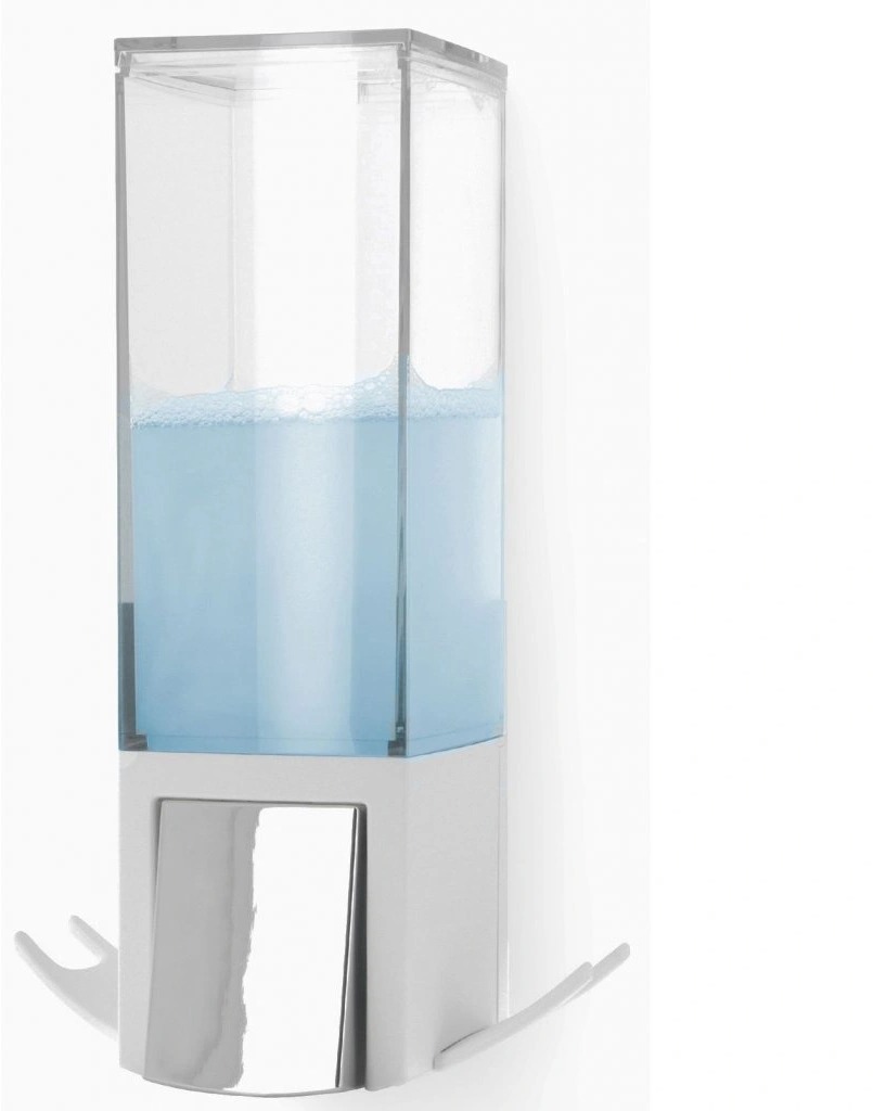 Dávkovač mydla – manuálny, nástenný, plastový, objem 500 ml, priezor nádržky súčasťou, ovládaný jednou rukou a s nastaviteľným dávkovaním, nalepovací, rozmery 20,6 × 12,1 × 12,1 cm (V׊×H), lepiaca páska súčasťou balenia Máte problém s…