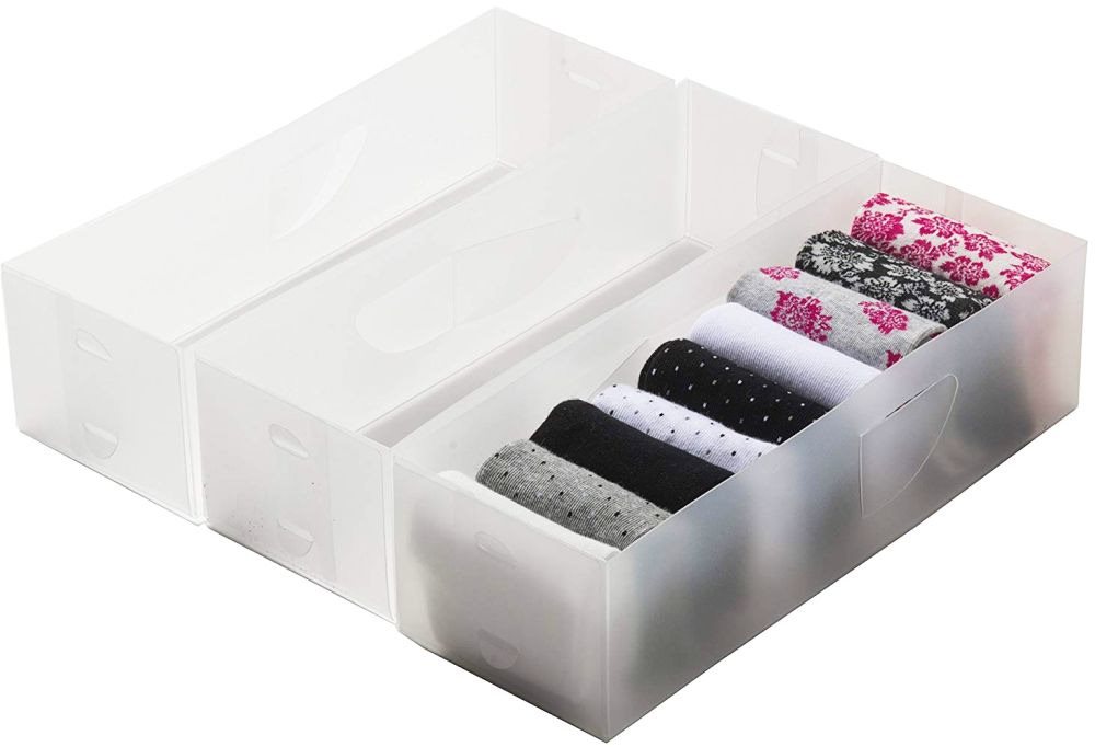 Organizér do zásuvky – na uloženie drobnej bielizne, kozmetiky, či doplnkov, dodávané v plochom stave, ľahké zloženie, materiál plast, v balení 3 ks, rozmery 30 × 10,5 × 6 cm Set tří kusů organizérů Compactor…