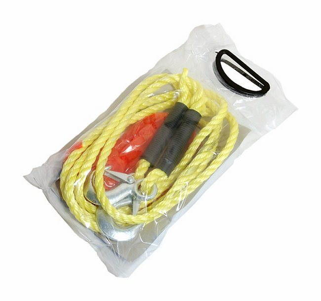 Ťažné lano – pre vozidlá do 1800 kg, dĺžka 3,2 m, zakončené hákom, materiál syntetické vlákno, so zástavkou a obalom, žltá farba, hmotnosť 0,49 kg Pri nepríjemnej poruche na vašom automobile využite ťažné lano na odsunutie automobilu z neprehľadnej križovatky, nebezpečného úseku ulice alebo z diaľnice. Ťažné lano s dĺžkou 3,2 metra sa dá ľahko p