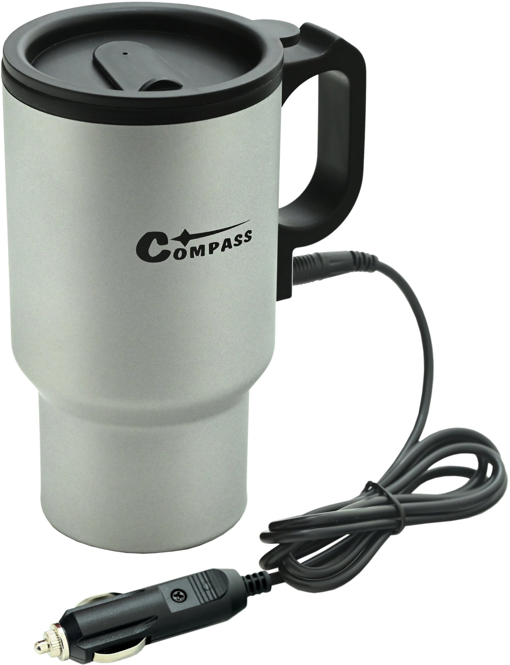 Termohrnček objem 450 ml, materiál: nerez a plast, dvojitá stena, Prajete si, aby vás káva či čaj zahriali kdekoľvek a kedykoľvek? Termohrnček Compass Termohrnček s ohrevom 12 V vám poskytne jednoduché riešenie. Termohrnček Compass Termohrnček s ohrevom 12 V má obje