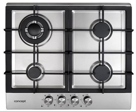 Varná doska – plynová, vstavaná, 4 platničky, poistka horáka, horák wok, elektrické zapaľovanie, otočné gombíky, vzhľad nehrdzavejúca oceľ, povrch nehrdzavejúca oceľ, pripojenie 230 V, zemný plyn a propán-bután, rozmery 59 × 51 × 8,2 cm (Š×H×V), na zapojenie spotrebiča je potrebný plynár WOK horákLiatinové mriežkyBezpečnosťPraktická dvojdielna liatinová mriežkaPlynová varná doska CONCEPT PDV4760 je vybavená štyrmi plynovými horákmi rozdielneho výkonu a nad nimi sú umiestnené masívne l